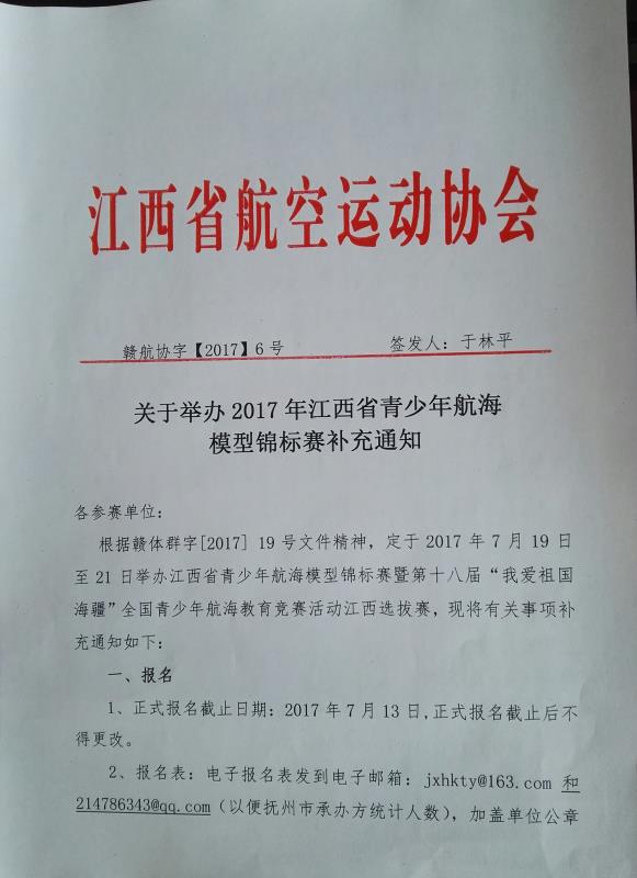内容详情 关于举办2017年江西省青少年航海模型锦标赛补充通知 时间:2017-07-04 来源: 附件下载: 附件1 2 3 下载 附件4 航海模型汇款登记表 上一篇:关于举办2017年江西省青少年航空航天模型锦标赛补充通知 | 下一篇: 省航空运动管理中心开展“重温入党誓词,铭记革命历史”的活动