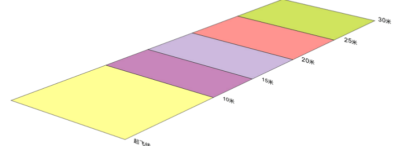 4.2.1. 比赛场地(见图二):起飞线距靶标分别为 3 米、4 米、5 米、6 米、7 米、8 米、9 米、10米。