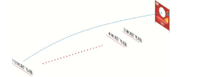 6起飞线),向靶标上的直径约 80cm 的圆环内投掷纸飞机,在每条起飞线可投掷 3 次;